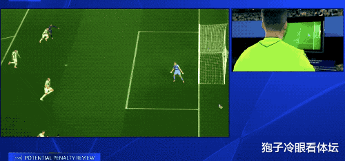 VAR介入,特里皮尔的违例 清晰可见,裁判 吹罚十二码球,并给了特里皮尔一张警告 。