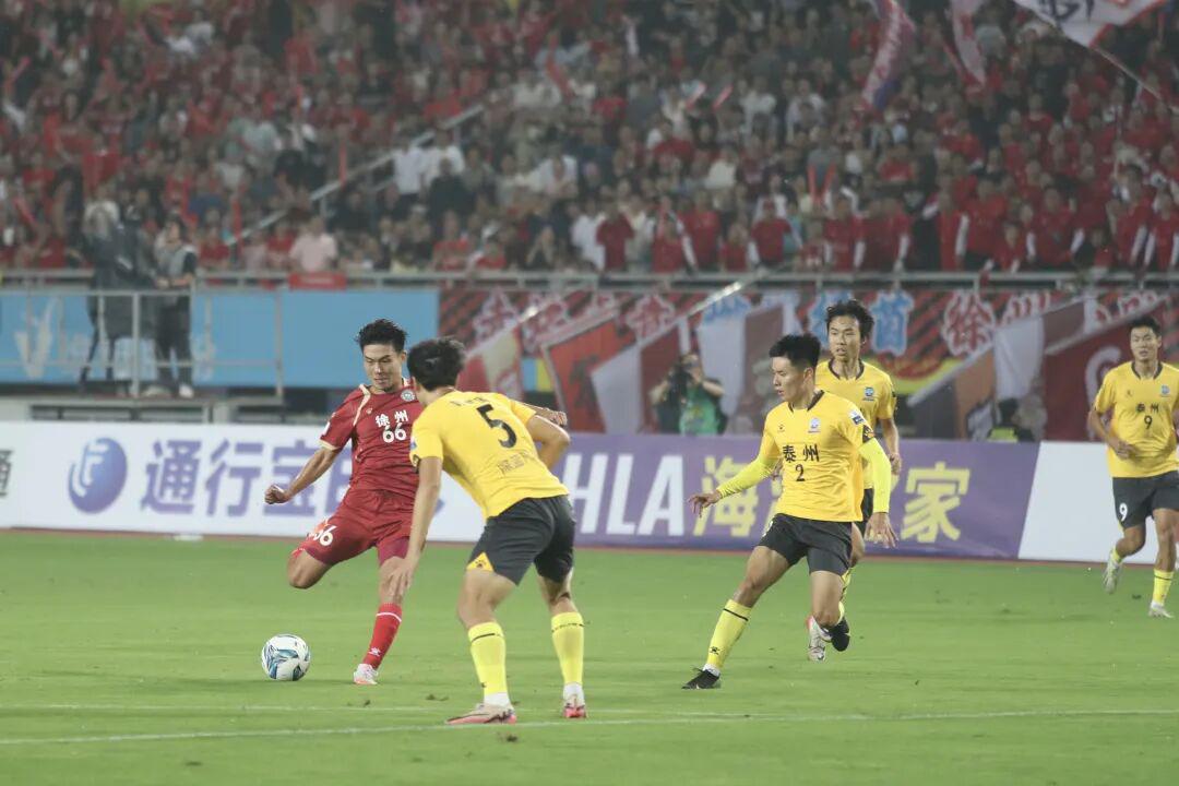 上半场第42分钟,徐州队66号队员郑雪健边路传中,29号队员刘毅臣接传球头球射入球门,徐州队冲破僵局,赶走1:0最初。