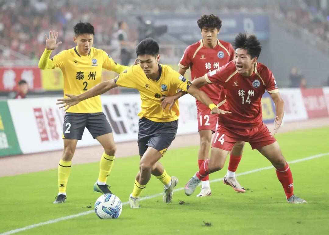 老例赛阶段,徐州队6胜5平1负,凭借硬朗的拼抢和铁血驻防排行第三。泰州队诚然排在第六,但驻防韧性极强。老例赛两队交手,徐州曾以2∶1险胜。